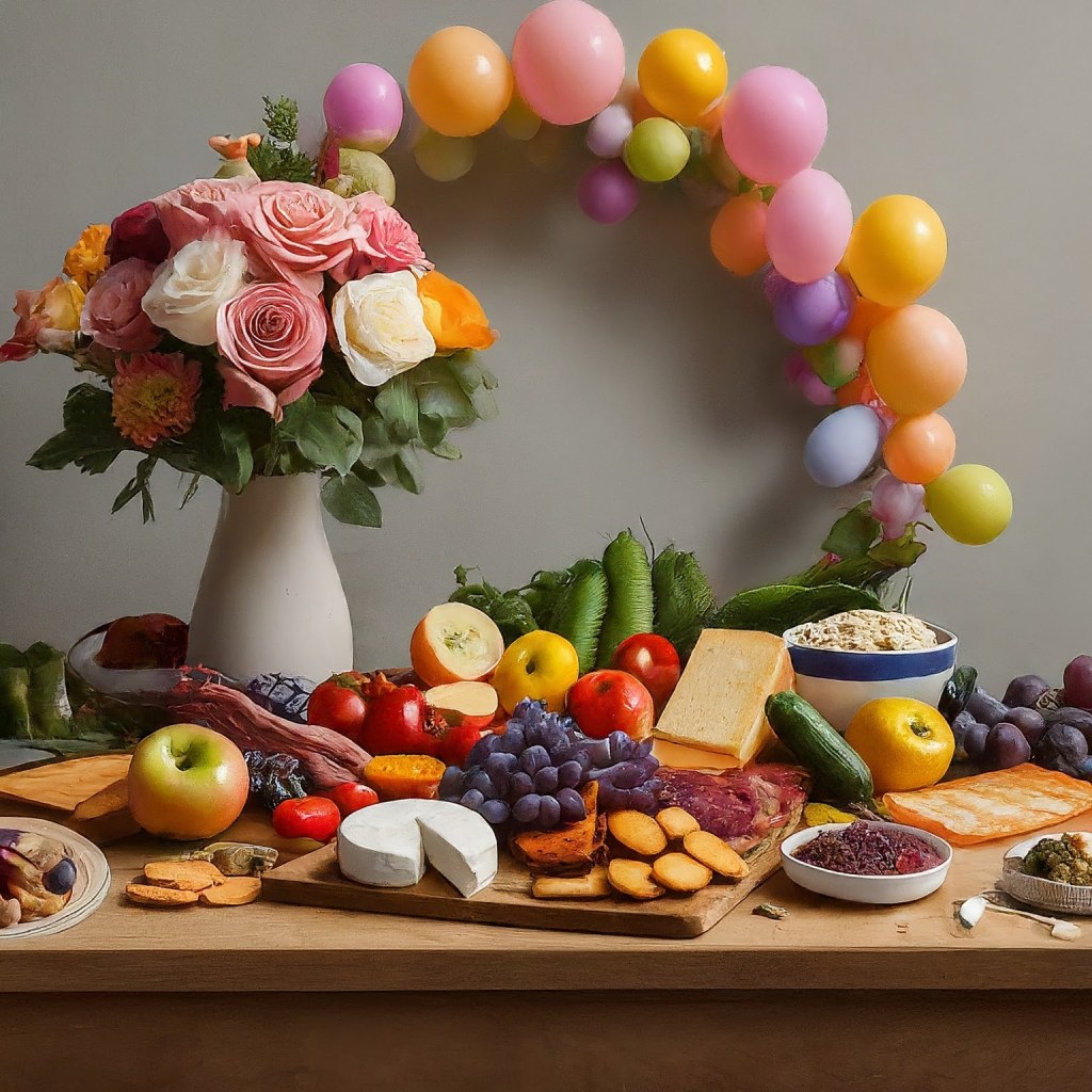 Indulge in our most lavish offering, featuring an expansive charcuterie board overflowing with fresh grapes, assorted nuts, crisp apples, cucumbers, peppers, crackers, olives, and an extensive selection of premium house-cured meats and gourmet cheeses. Elevate the ambiance with a stunning flower wall rental and a grand balloon arch, creating an unforgettable setting for your special event.