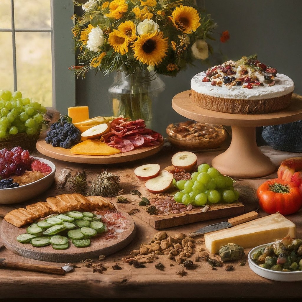 Elevate your celebration to new heights with our premium package. Indulge in an expansive charcuterie board overflowing with fresh grapes, assorted nuts, crisp apples, cucumbers, peppers, crackers, olives, and an extensive selection of premium house-cured meats and gourmet cheeses. Transform your space into a breathtaking wonderland with a stunning flower wall rental and a grand balloon arch. To top it all off, delight your guests with a delectable dessert spread, perfectly complementing the savory flavors.